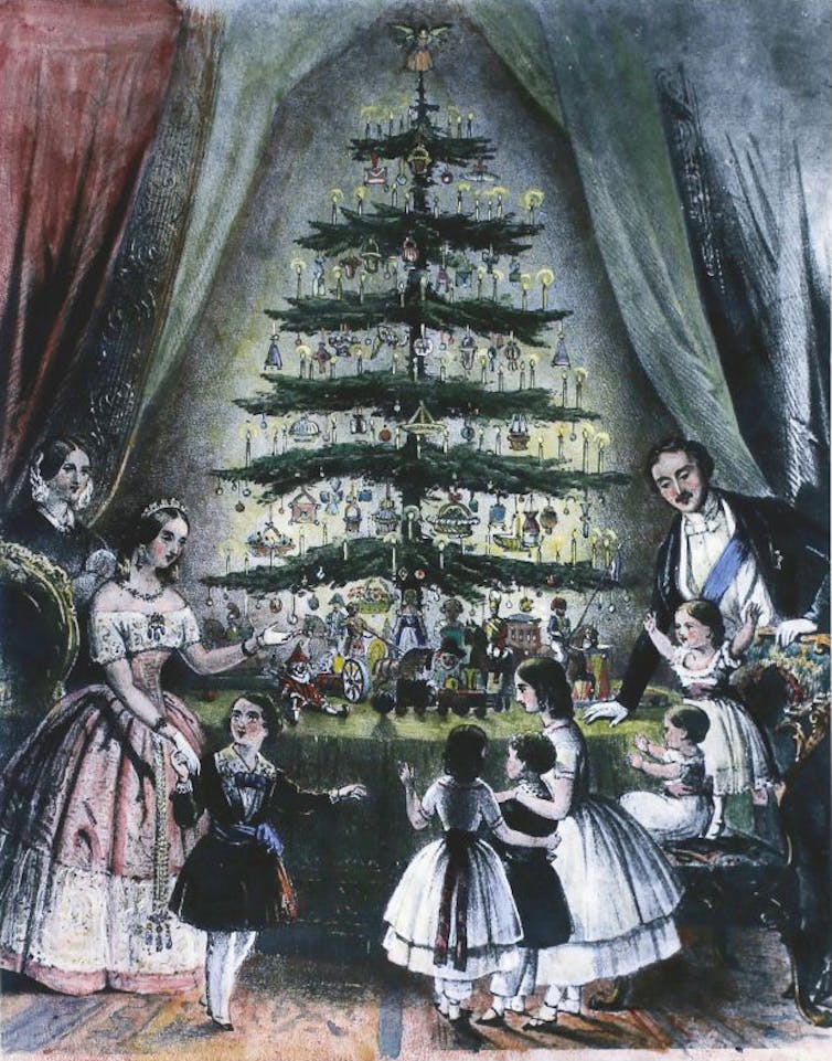 Ese año, Victoria y Alberto posaron en el Illustrated London News de pie con sus hijos alrededor de un árbol de Navidad decorado con juguetes y pequeños regalos, velas, caramelos, tiras de palomitas de maíz y pastelillos de fantasía colgados de las ramas con cintas y cadenas de papel.